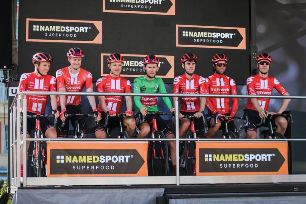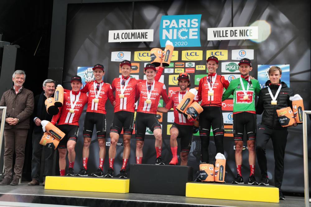 AG2R La Mondiale (Fra) Astana Pro Team (Kaz) Bahrein – McLaren (Brn) Bora – Hansgrohe (Ger) CCC Team (Pol) Cofidis (Fra) Deceuninck – Quick-Step (Bel) EF Pro Cycling (Estados Unidos) Groupama – FDJ (Fra) Israel Start-Up Nation (Isr) Lotto Soudal (Bel) Mitchelton – Scott (Aus) Movistar Team (Esp) NTT Pro Cycling Equipo (Rsa) Equipo Ineos (Gbr) Equipo Jumbo – Visma (Ned) Team Sunweb (Ger) Trek – Segafredo (Usa) EAU Team Emirates (Uae)