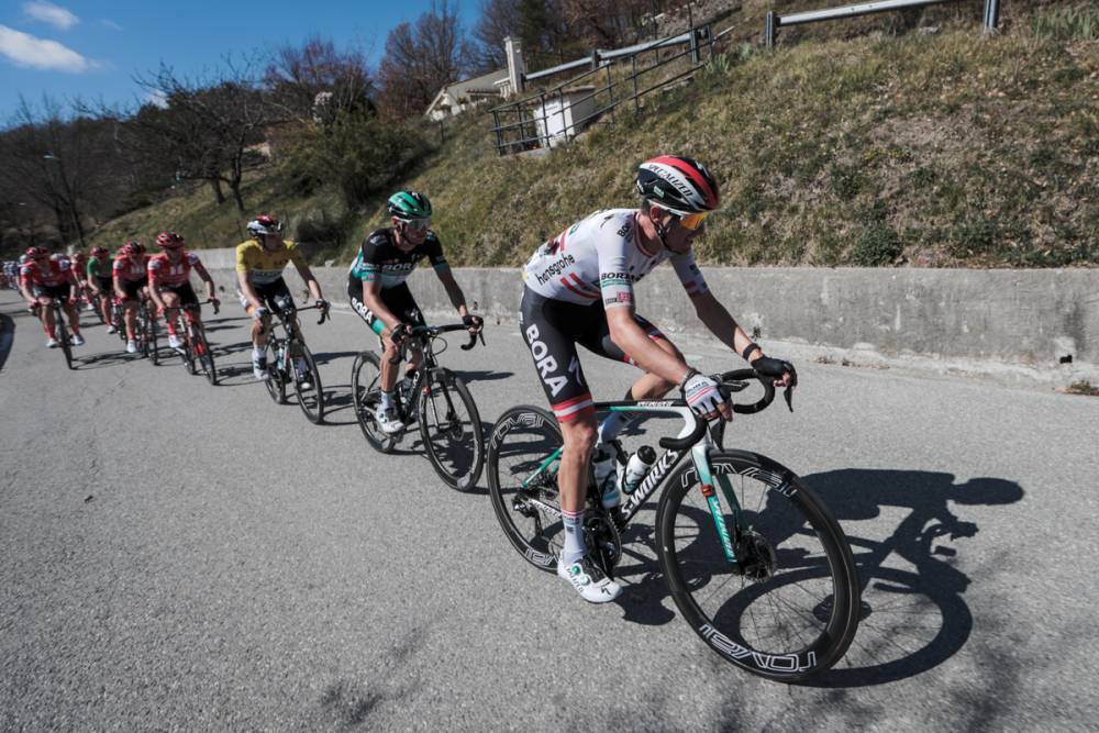 Con 30 km para el final, el Equipo Groupama-FDJ y algunos corredores de Trek-Segafredo, entre ellos el campeón mundial Mads Pedersen, aumentaron el ritmo y tuvieron lugar escalones. Entre los corredores que cayeron se presentaron el australiano Caleb Ewan (Lotto-Soudal), el irlandés Sam Bennett (Deceucninck-Quick Step) y su líder Julian Alaphilippe, quien aplastó. Cinco kilómetros más adelante, el favorito de antes de la carrera, N Quintana, se estrelló y logró regresar a la carrera en la bicicleta de su hermano Dayer. En los últimos 20 km, surgió un grupo de 35 corredores, incluidos Schachmann, Thibaut Pinot, Sergio Higuita, Peter Sagan, Pedersen y Vincenzo Nibali para luchar por la victoria en la etapa.