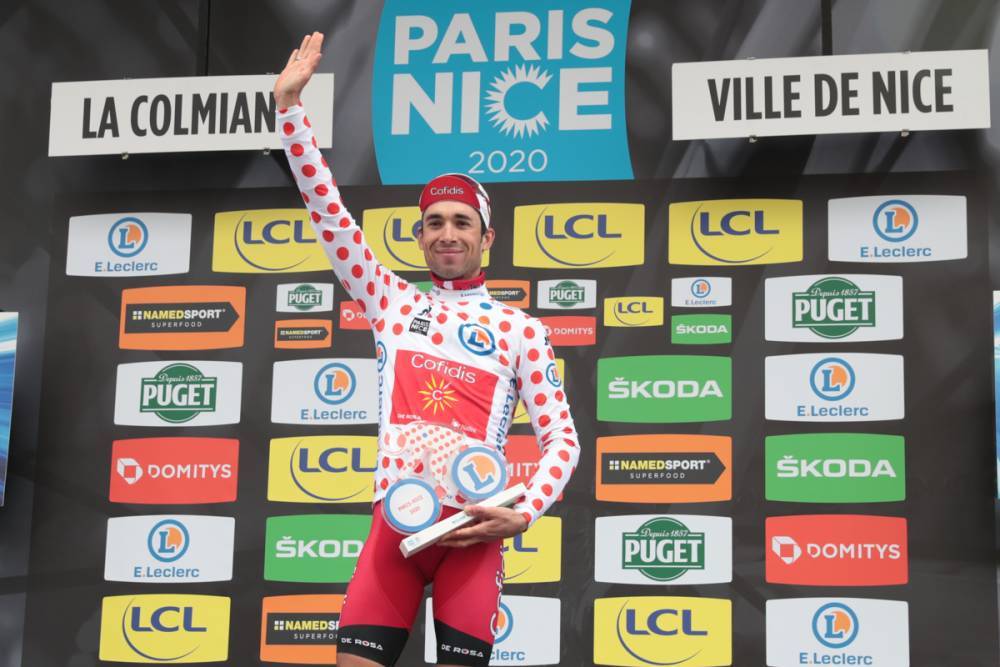 El inicio de la segunda etapa de París-Niza se dio a las 12:32 a 133 corredores. El líder de KOM Jonathan Hivert (Direct Energie) y José Manuel Díaz (Nippo Delko Provence) atacaron el arma. Alcanzaron la primera subida del día (Cote des Loges, 3er gato, km 22.5) con una ventaja de 2:20 sobre el pelotón. Hivert recolectó cuatro puntos más para fortalecer su camiseta de lunares. Mientras Díaz recolectó tres puntos en el sprint intermedio en Marchais (km 27.5), los dos obtuvieron su ventaja máxima en el km 40 (3:10). Hivert agarró cuatro puntos más en Cote de Bouville (3er gato, km 65.5) y en Cote du Pressoir (3er gato, km 74) para llevar su cuenta a 20 puntos, con Díaz en el segundo lugar con seis puntos.